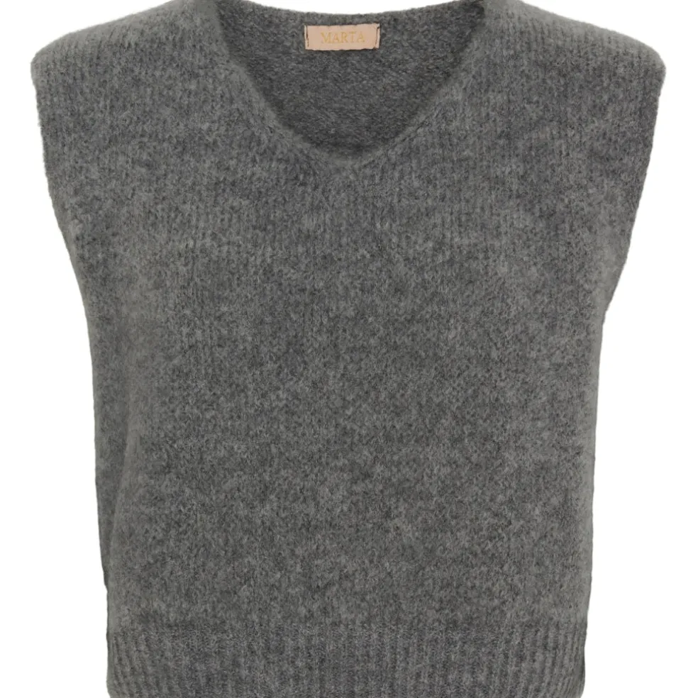 Sej vest med rund hals fra Marta. Vesten kan styles som den er med et par blazerbukser, eller over en langærmet kjole for et sejt lag-på-lag look.