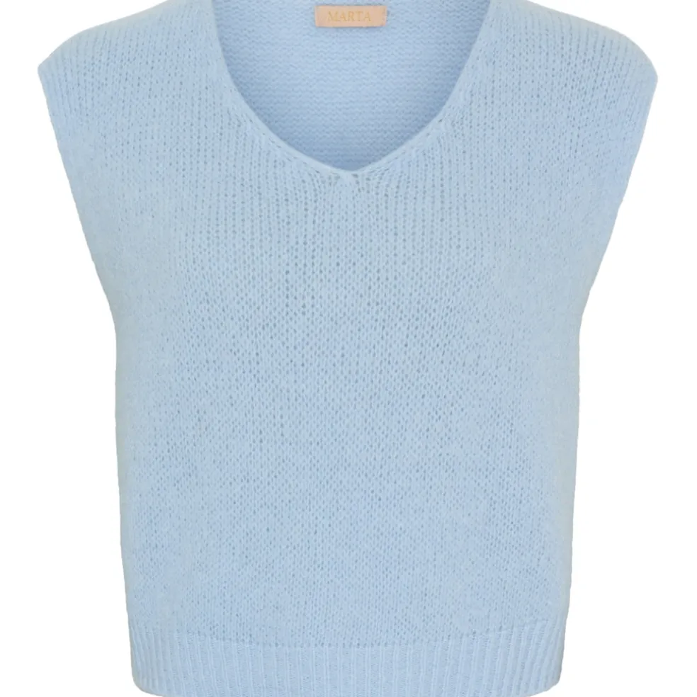Sej vest med rund hals fra Marta. Vesten kan styles som den er med et par blazerbukser, eller over en langærmet kjole for et sejt lag-på-lag look.