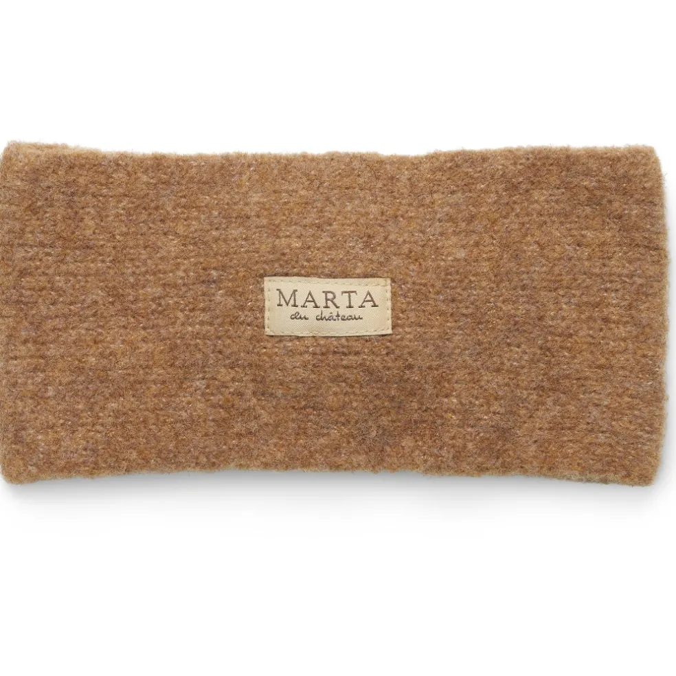Lækkert strikket pandehånd/ørevarmer med knudedetalje og Marta logo.