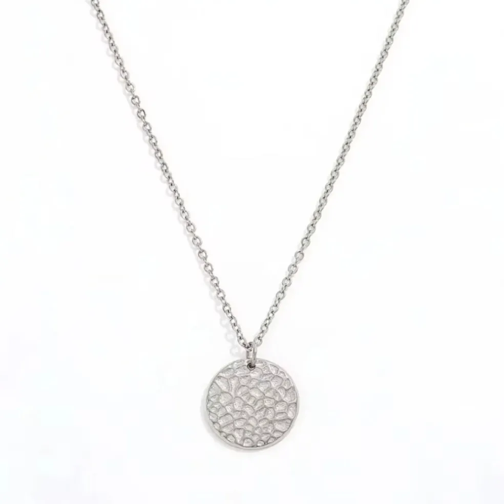 Smuk og moderne halskæde fra Muun Studio. Hamret finish givet en levende look