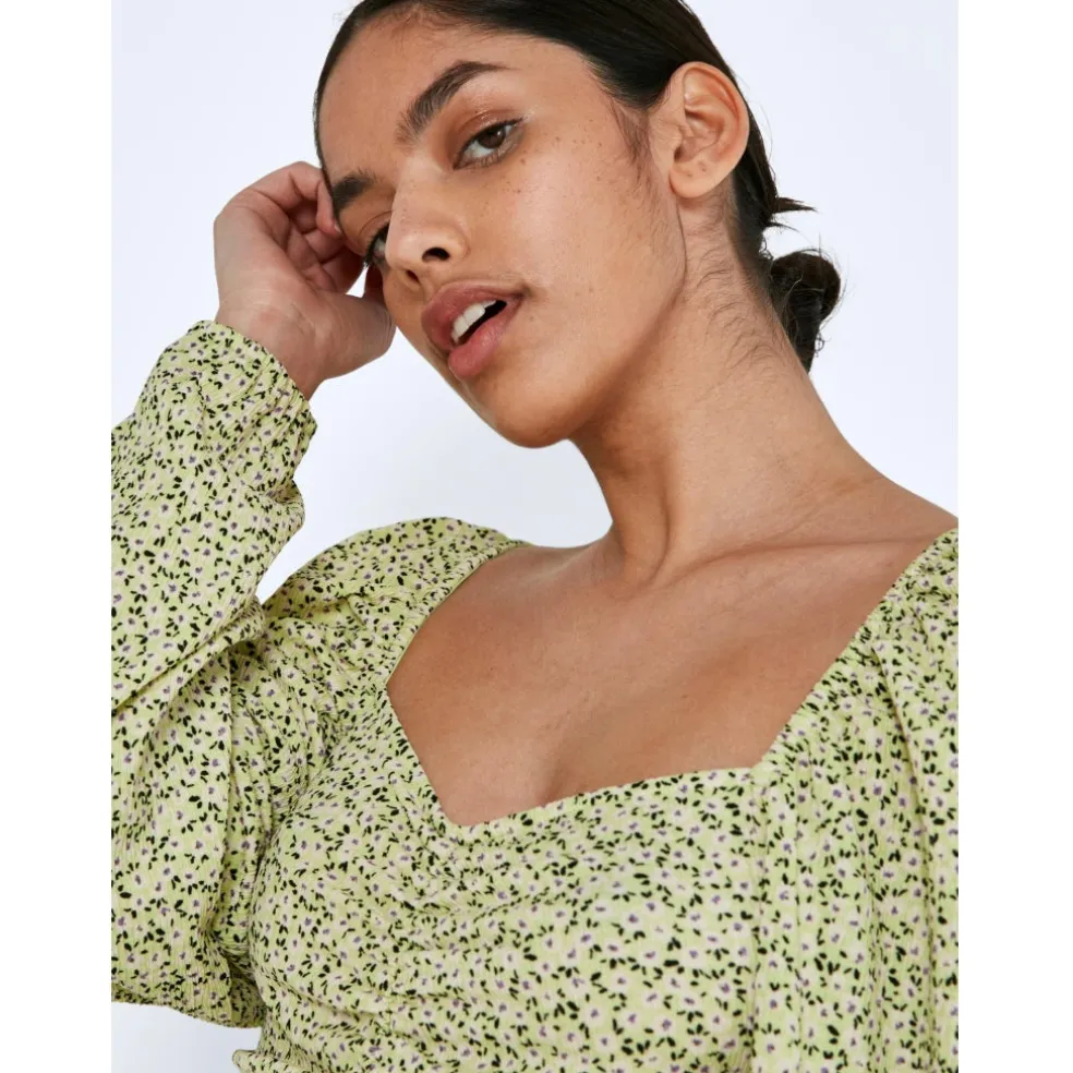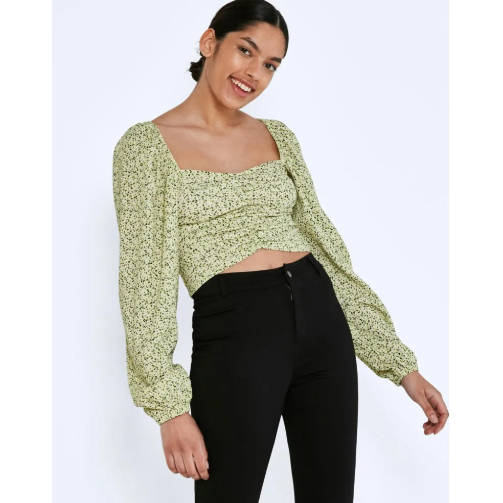Super sød bluse fra Noisy May med ballon ærmer og rynke detalje i midten foran.