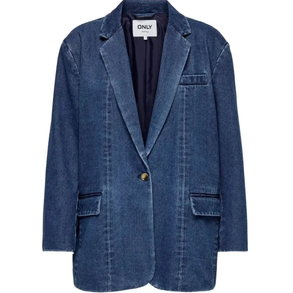 Cool oversize denimblazer fra Only med en enkelt knap, brystlomme og sidelommer. Style den med jeans for et fuldt denim-on-denim look og tilføj et par slingback stiletter.