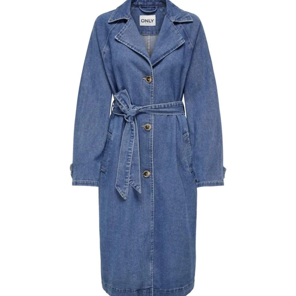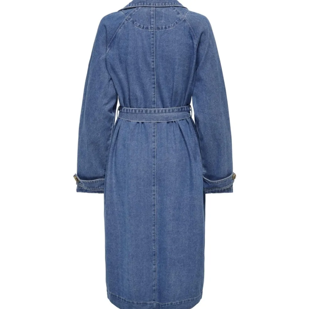 Smart denim trenchcoat fra Only. Jakken har bindebånd og knappelukning og er super trendy.