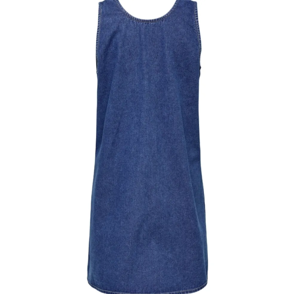 Utrolig smuk denim spencerkjole fra Only. Kjolen har de fineste sløjfebindebånd på ryggen, og kan både bruges med en basis t-shirt og langærmet under. På de varme sommerdage, brug den alene med et par ballerinaer til.
