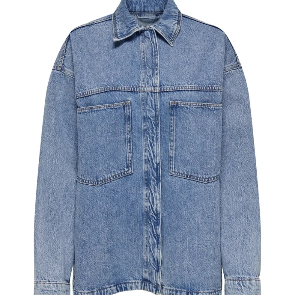 Den sejeste denimjakke fra Only i oversize fit. Jakken har trykknapper og er lavet i en let lækker denim kvalitet.