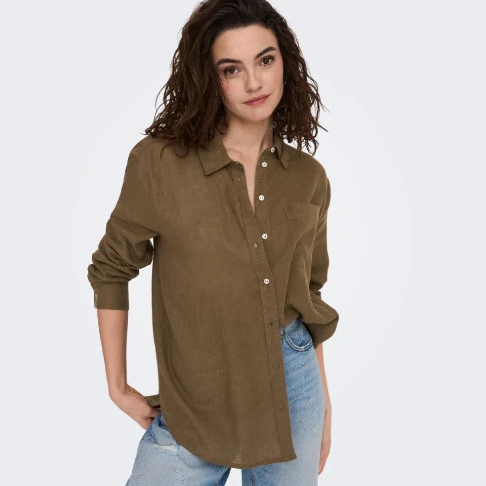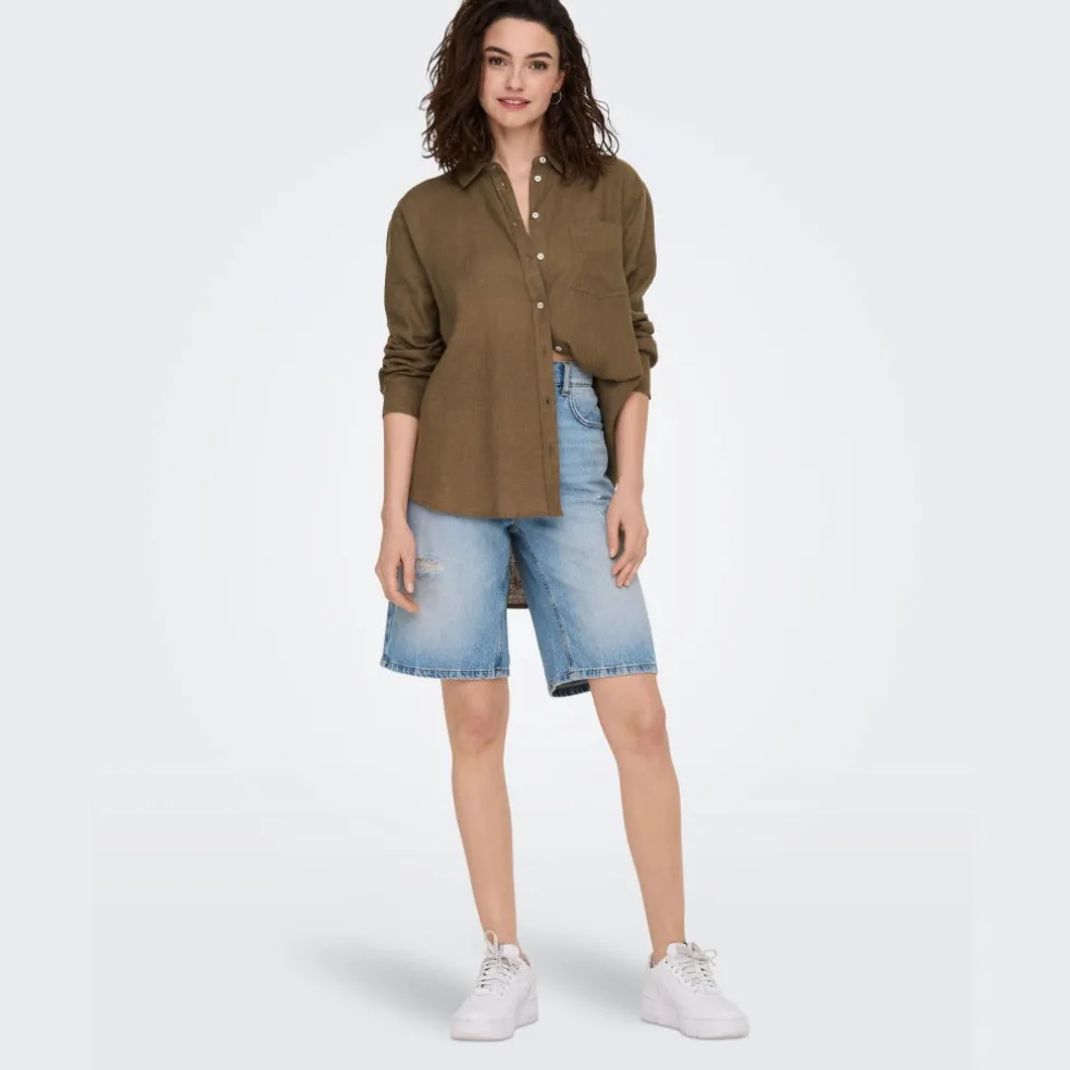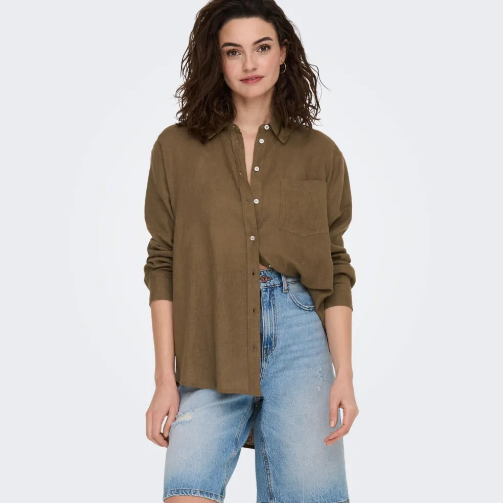 Let skjorte fra Only i den lækreste hørblanding. Skjorten kan styles med bukserne eller shortsene fra samme serie for et komplet, cool look. Ideelt her til sommerens begivenheder.