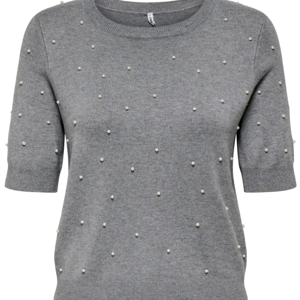 Striktrøje med perler fra Only. Perfekt til sensommeren og foråret, til et par jeans.