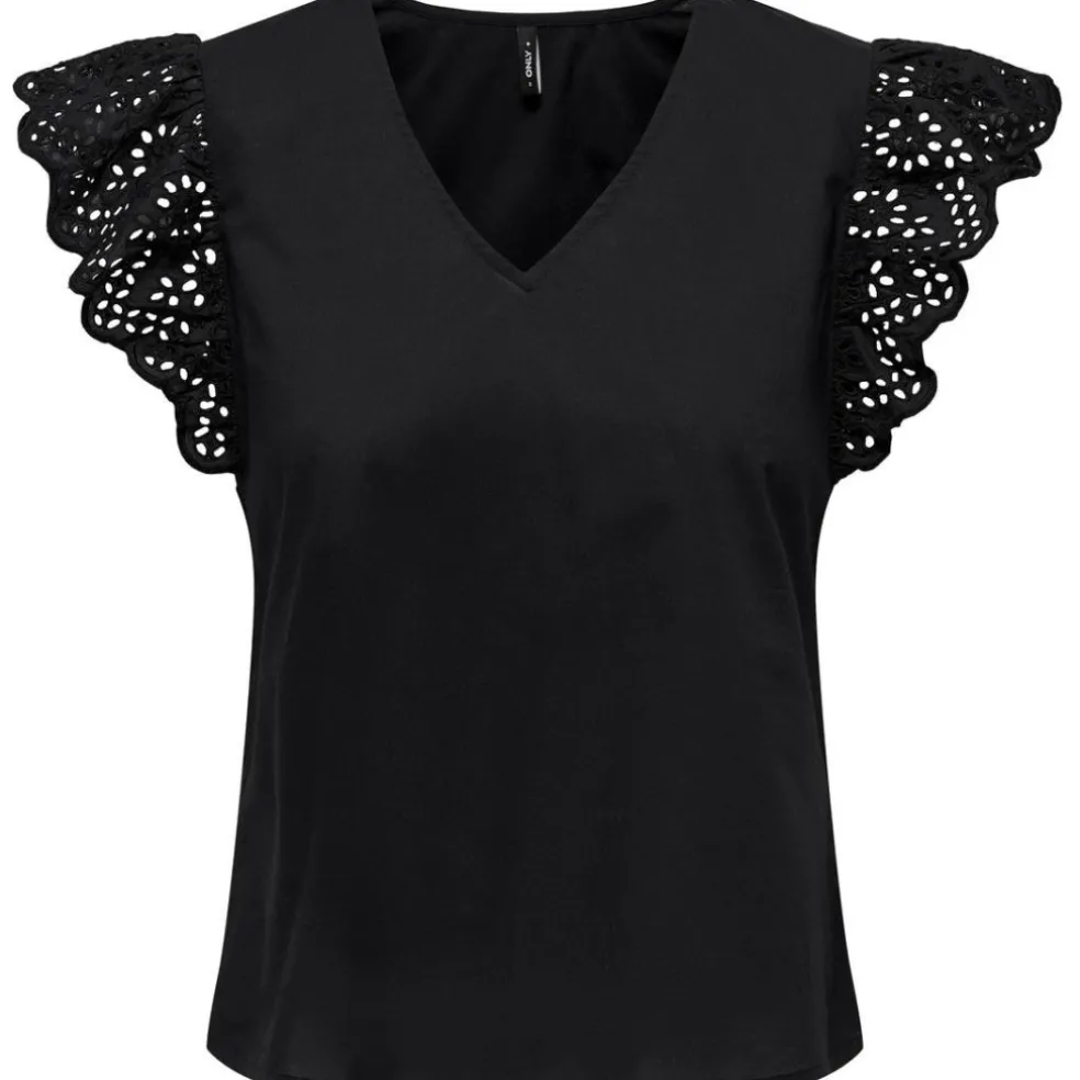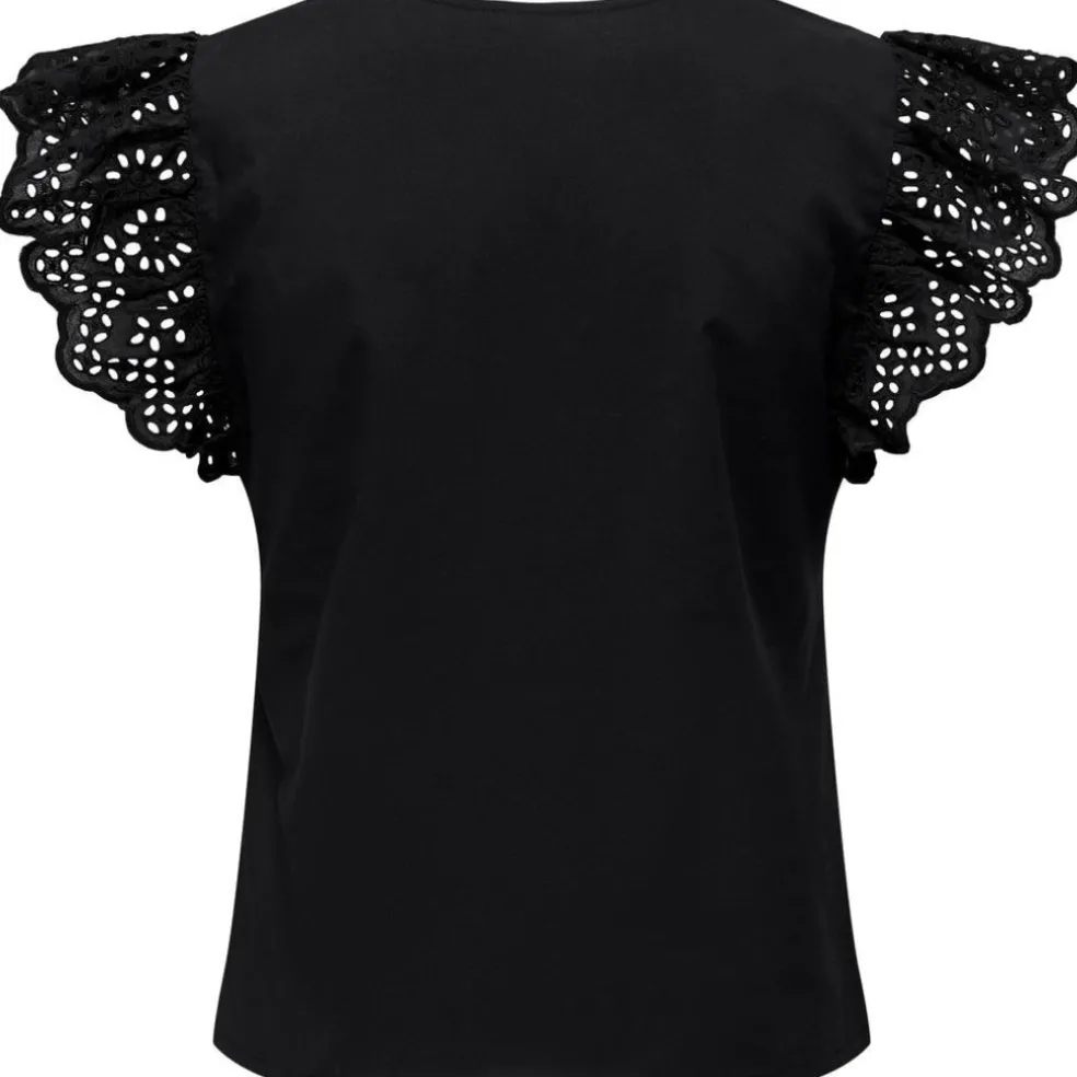 Sød top med blondeflæser på ærmerne. Ideel til de varme sommerdage med et par shorts eller en nederdel til.
