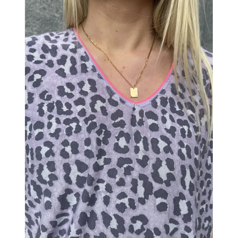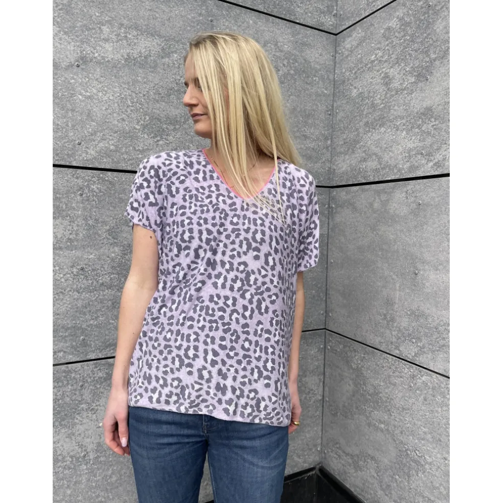 Lækker og let t-shirt i dyreprint med v-hals og sej pink detalje.