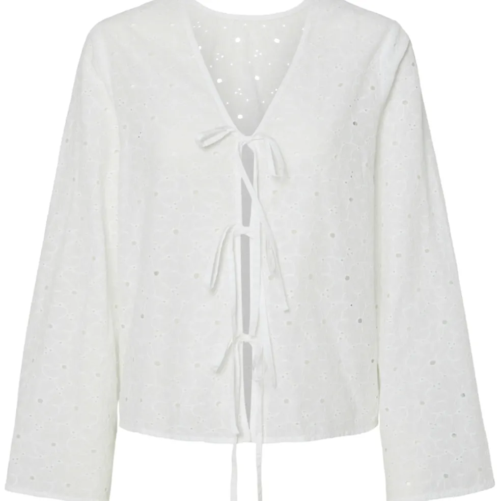 Den smukkeste bluse med bindebånd fra Pieces. Brug den for sig selv eller med en basis top under for ekstra komfort. Style den med en nederdel og et par ballerinaer for et fint look.