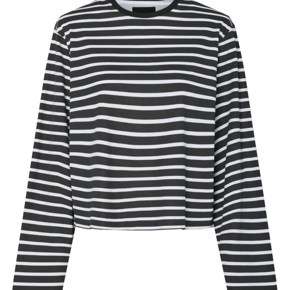 Sød stribet bluse med skulderpuder fra Pieces. Ideel til hverdagsbrug og er super let at style med et par jeans eller habitbukser.