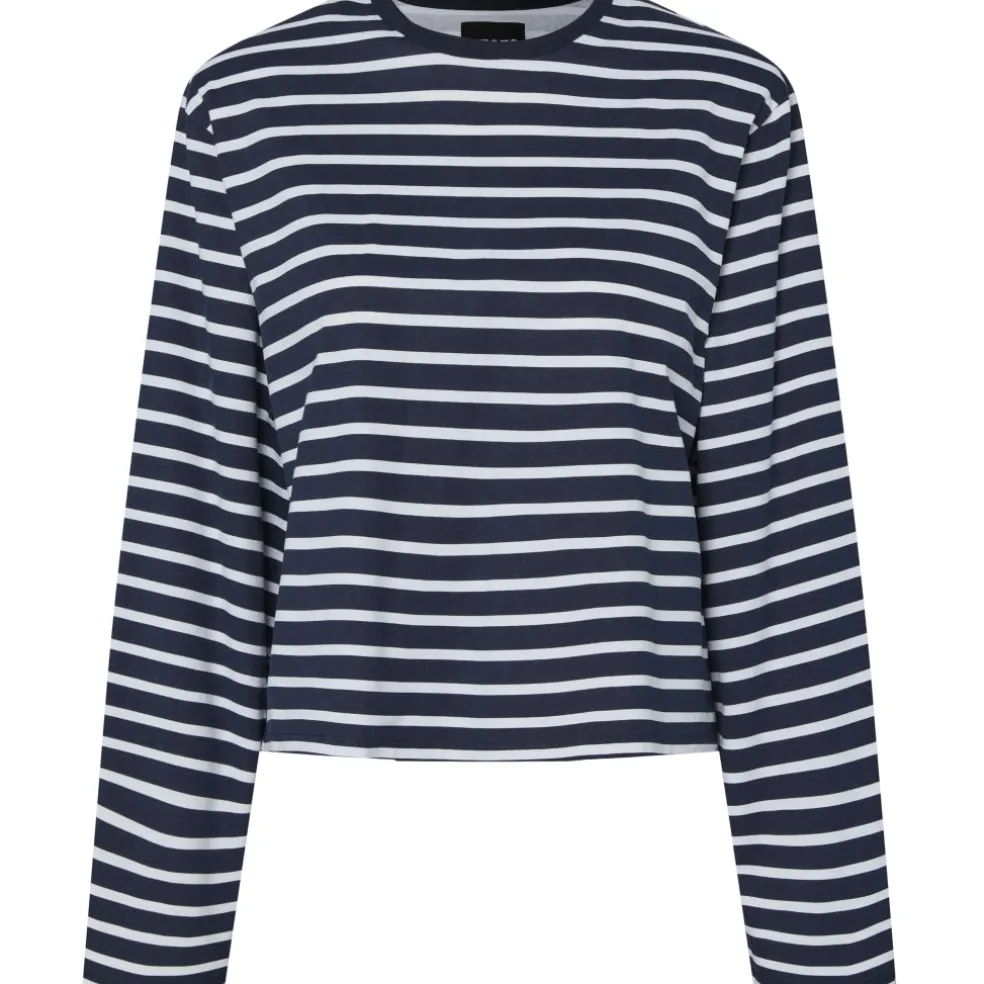 Sød stribet bluse med skulderpuder fra Pieces. Ideel til hverdagsbrug og er super let at style med et par jeans eller habitbukser.