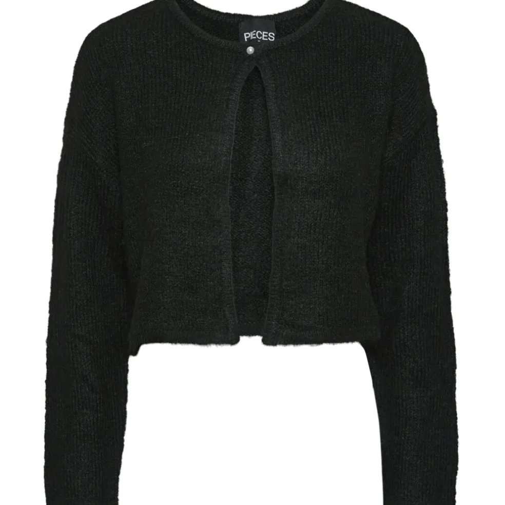 Smuk, kort cardigan fra Pieces. Cardiganen har en enkelt perleknap og er super elegant over en basis t-shirt eller langærmet. Brug den både til jeans og nederdele.