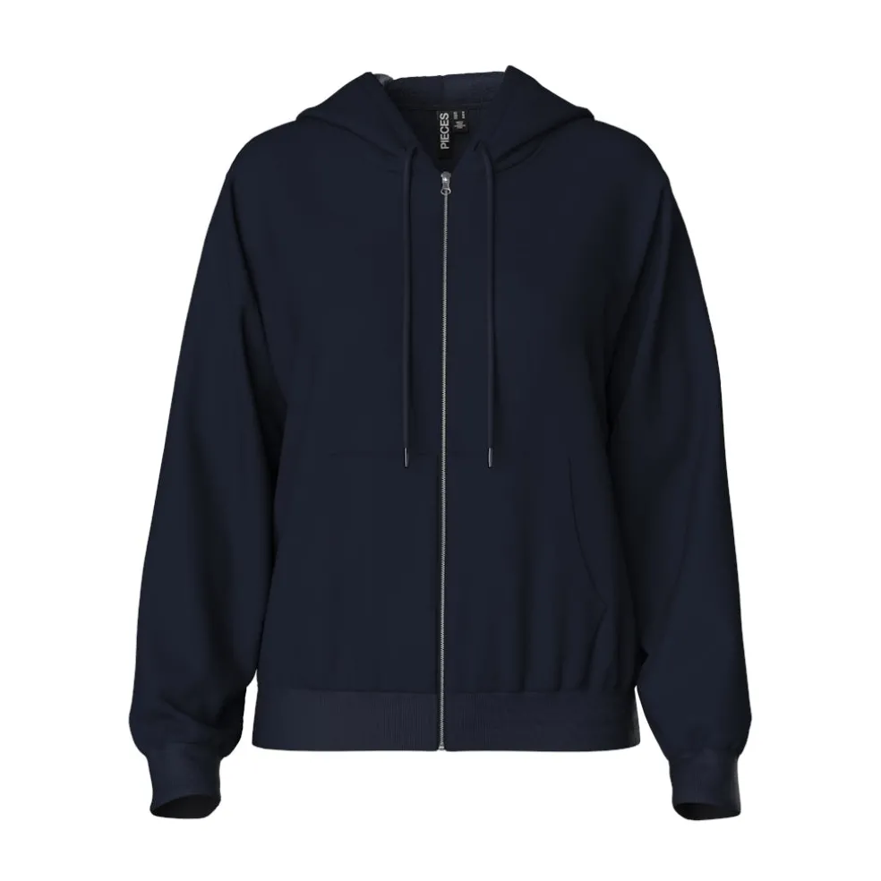 Lækker hoodie med lynlås og sidelommer fra Pieces. Hoodien har snørrer og hætte og er det perfekte valg til en afslapningsdag. Kan styles med bukserne i samme serie for ekstra komfort.