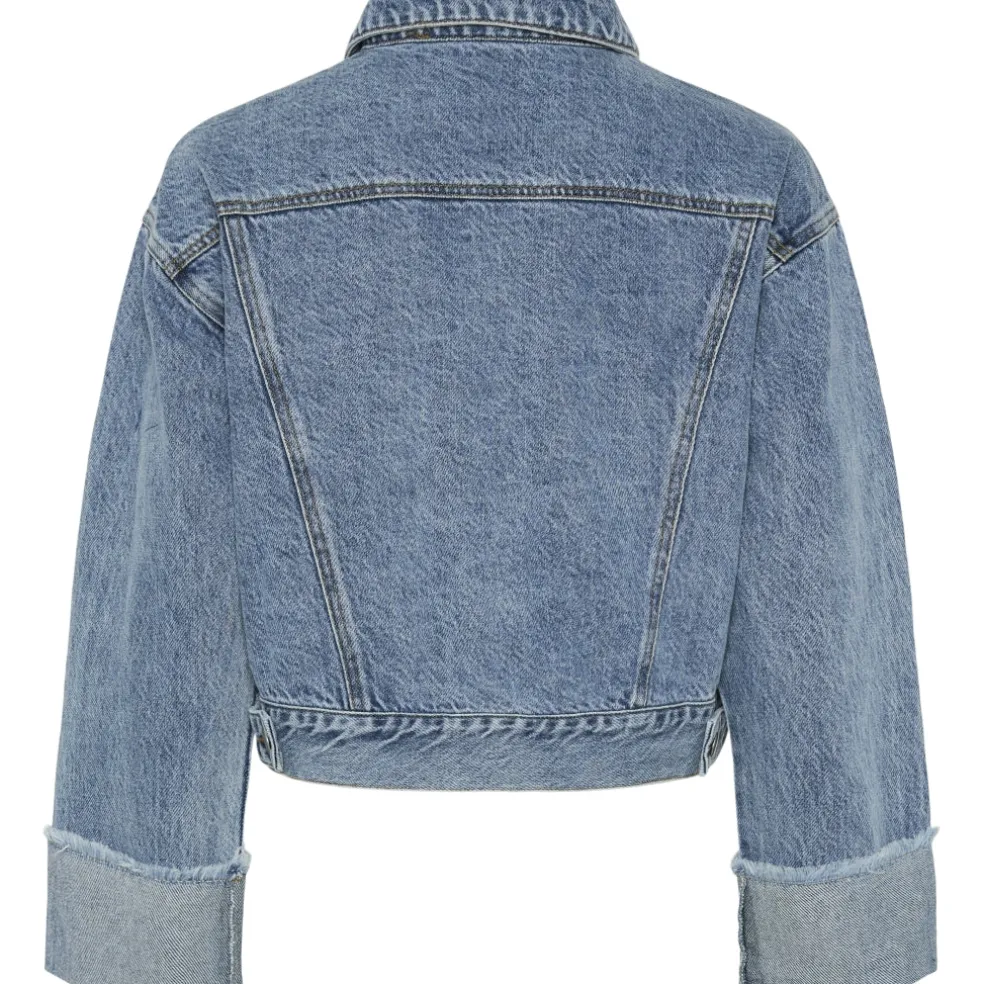 Sej denimjakke fra Pieces med opsmøg. Jakken kan styles med jeansen fra samme serie.