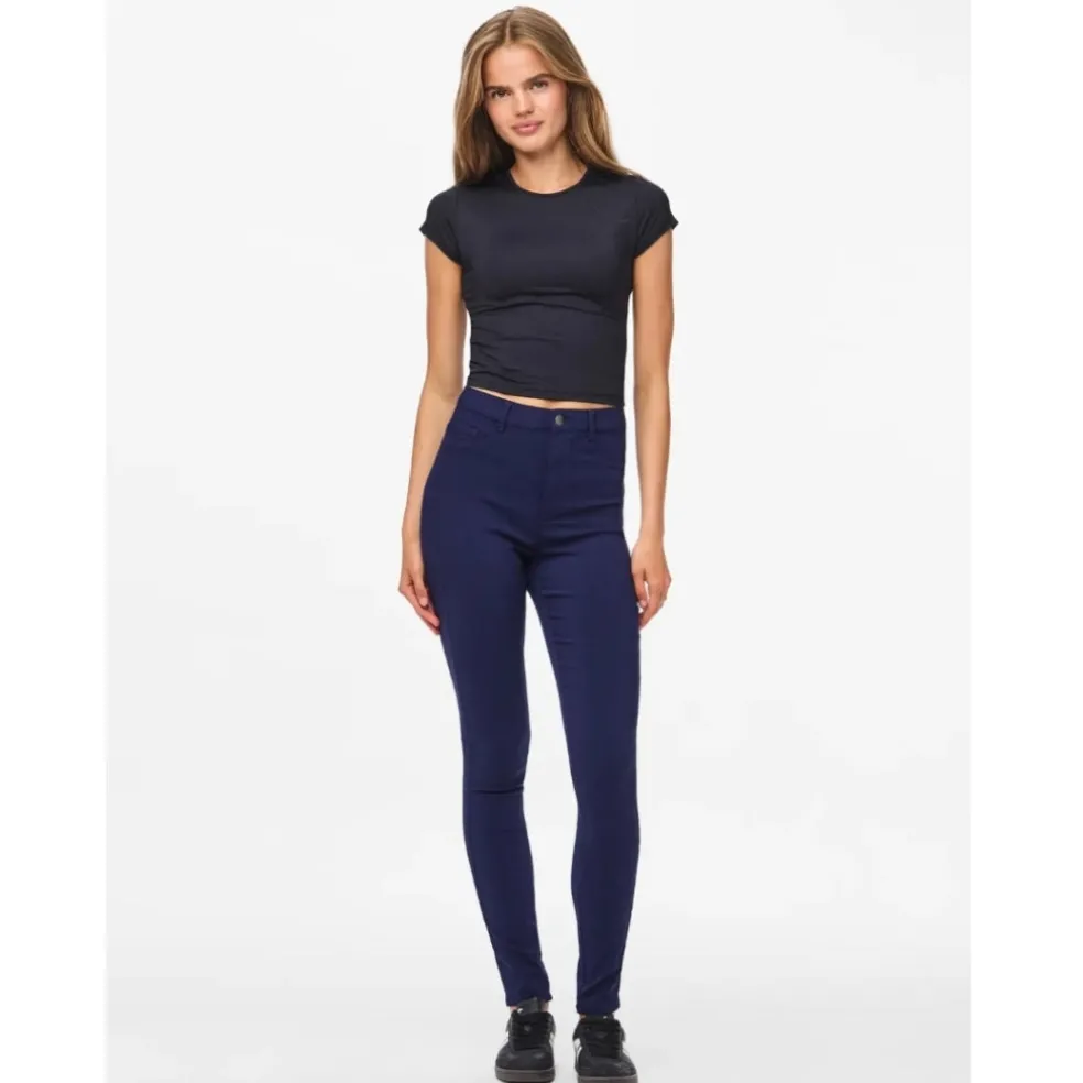 Jeggins (jeans/leggins) fra Pieces med høj talje, og modellen er skinny fit.