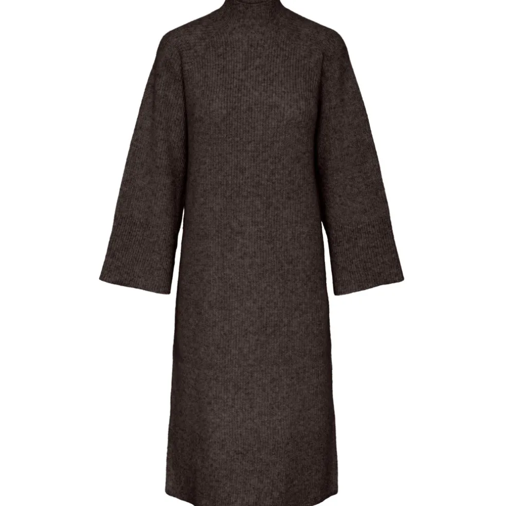 Lækker strikkjole med vidde ærmer og slids i siderne.