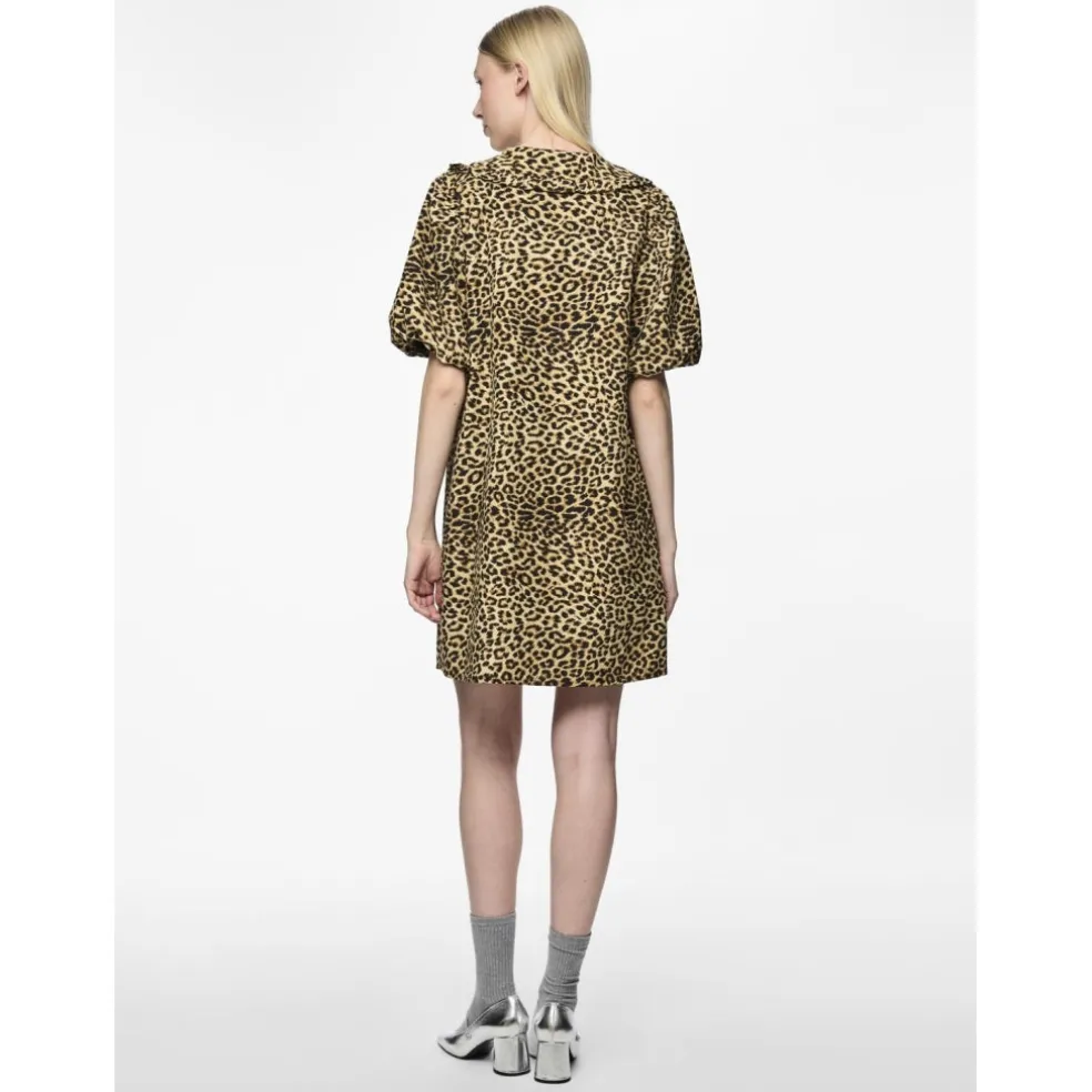 Sød gennemknappet kjole med stor krave og pufærmer.