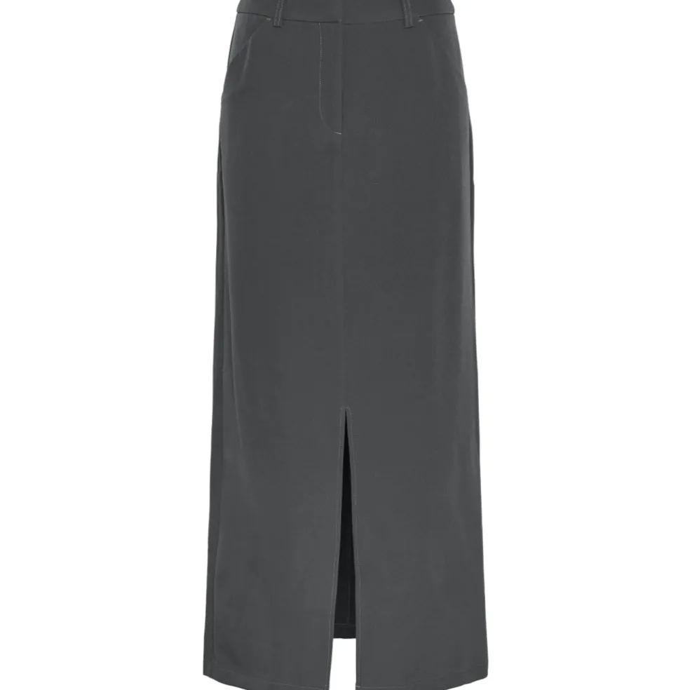Mega smart lang højtaljet nederdel fra Pieces med slids foran.