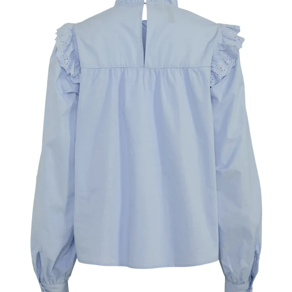 Denne søde blondebluse med krave har et feminint og stilfuldt design, der gør den ideel til festlige begivenheder. De fine blondedetaljer og den lette pasform gør den både stilfuld og behagelig.