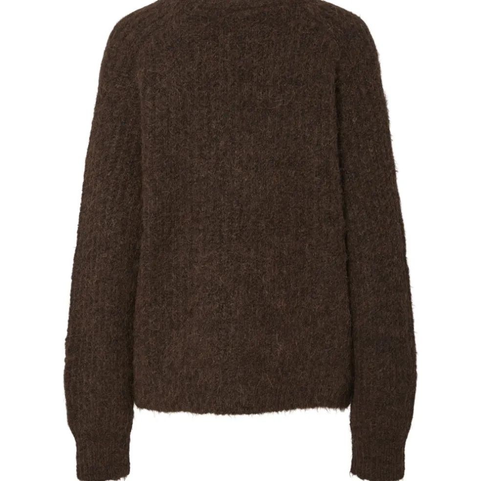Løstsiddende cardigan med V-hals og lange ærmer. Perfekt til lag-på-lag og afslappet stil med knaplukning og ribbede ærmegab.