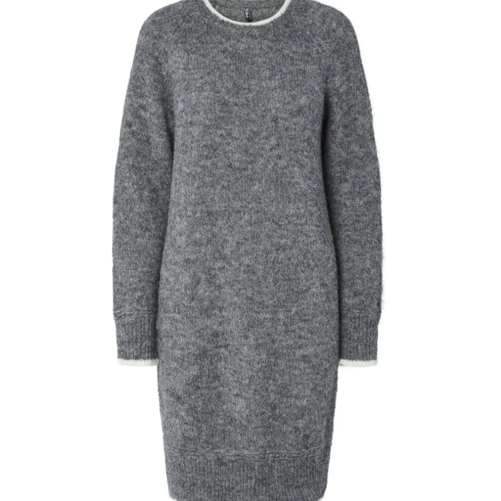 Strikket kjole med rund hals og lange ærmer med faldene skuldre. Regular fit og korte længde, perfekt til afslappede hverdagslooks.