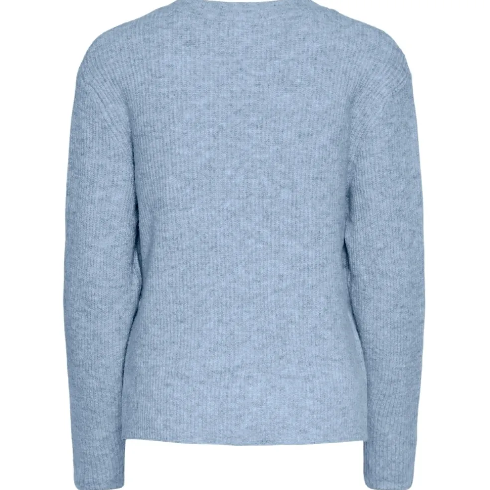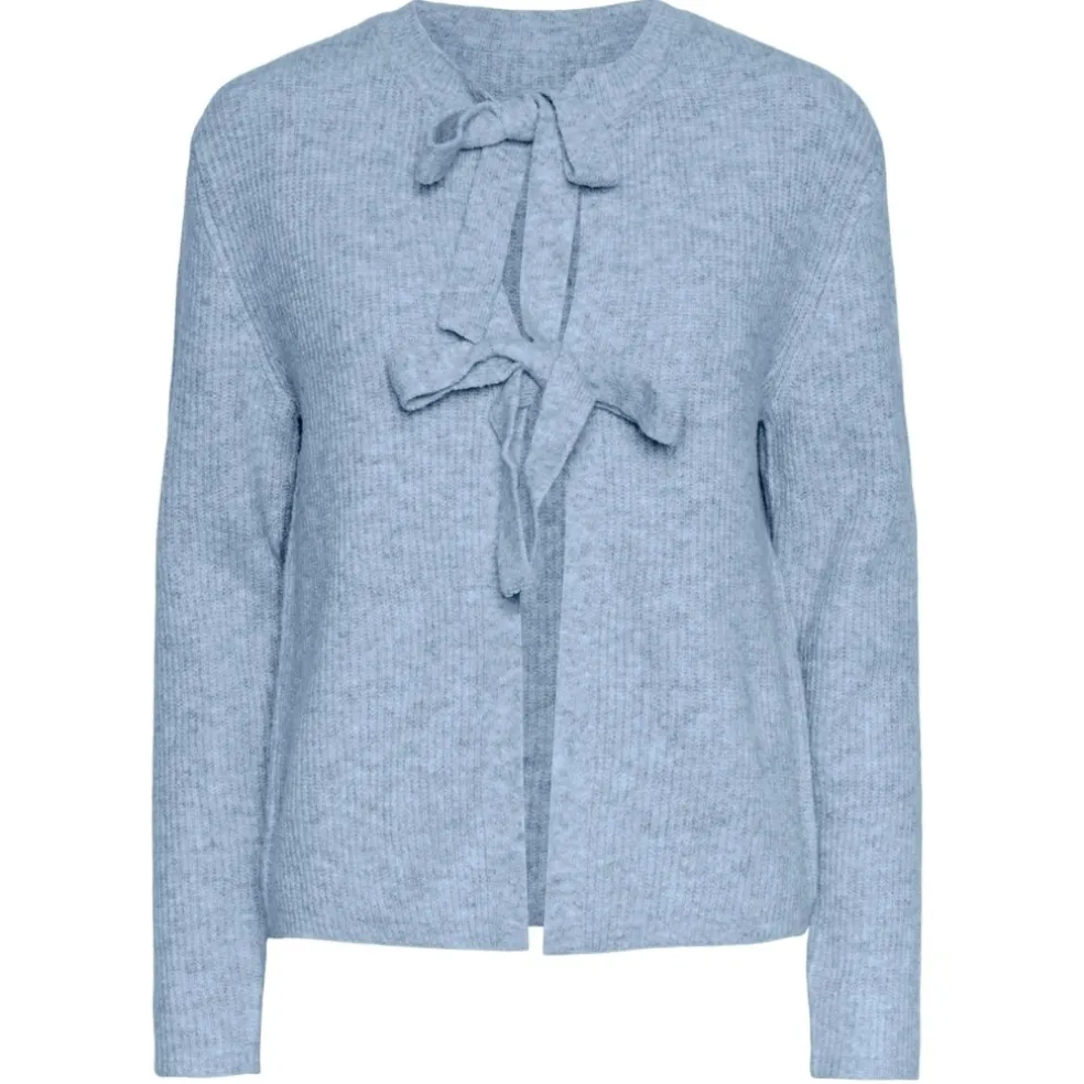 Smuk, blød striktrøje med bindebånd. Trøjen kan vendes om, så båndene sidder på ryggen. Super trendy og nem at style.