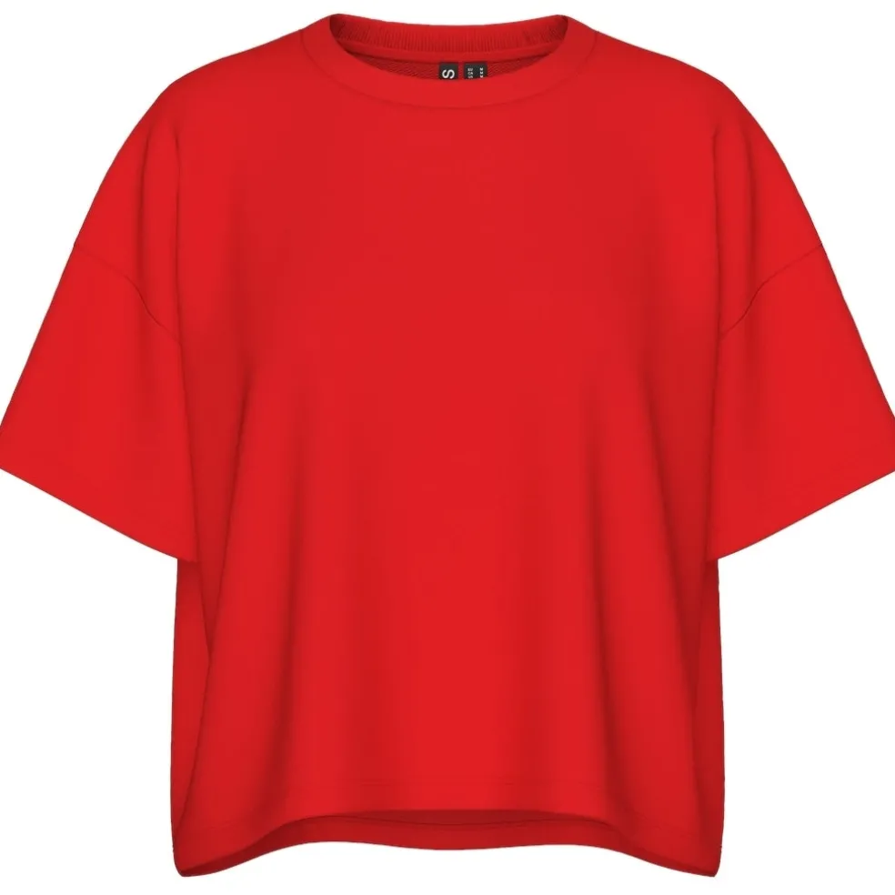 T-shirt fra Pieces med korte ærmer og rund hals. Super komfortabel og rar at have på, og passer til alle jeans, shorts og nederdele. Den har et loose fit og er bare uundværlig i hverdagen.