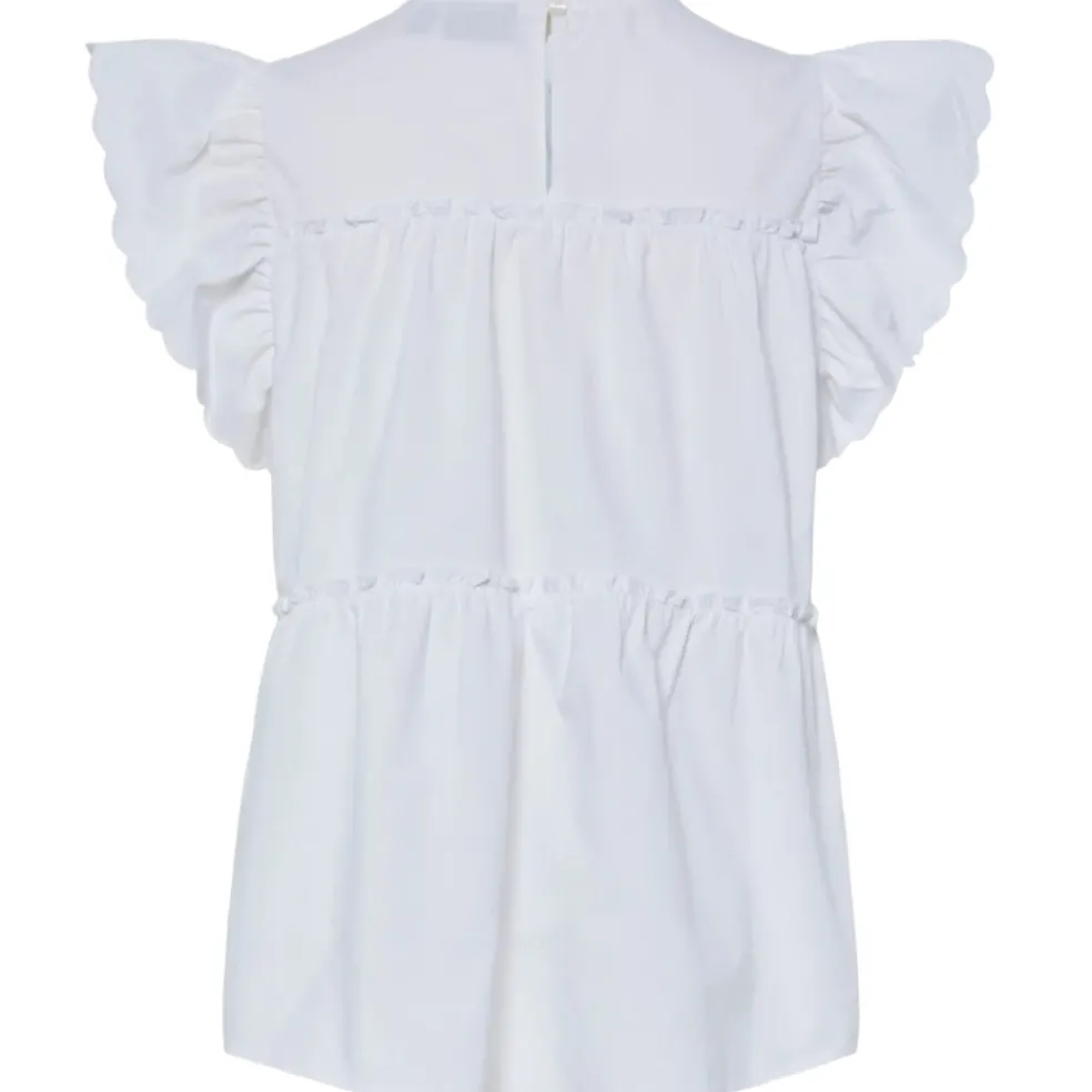 Fineste top fra Pieces med flæsedetaljer på ærmerne. Style til hverdag med et par jeans eller med en nederdel til de solrige sommeraftener.