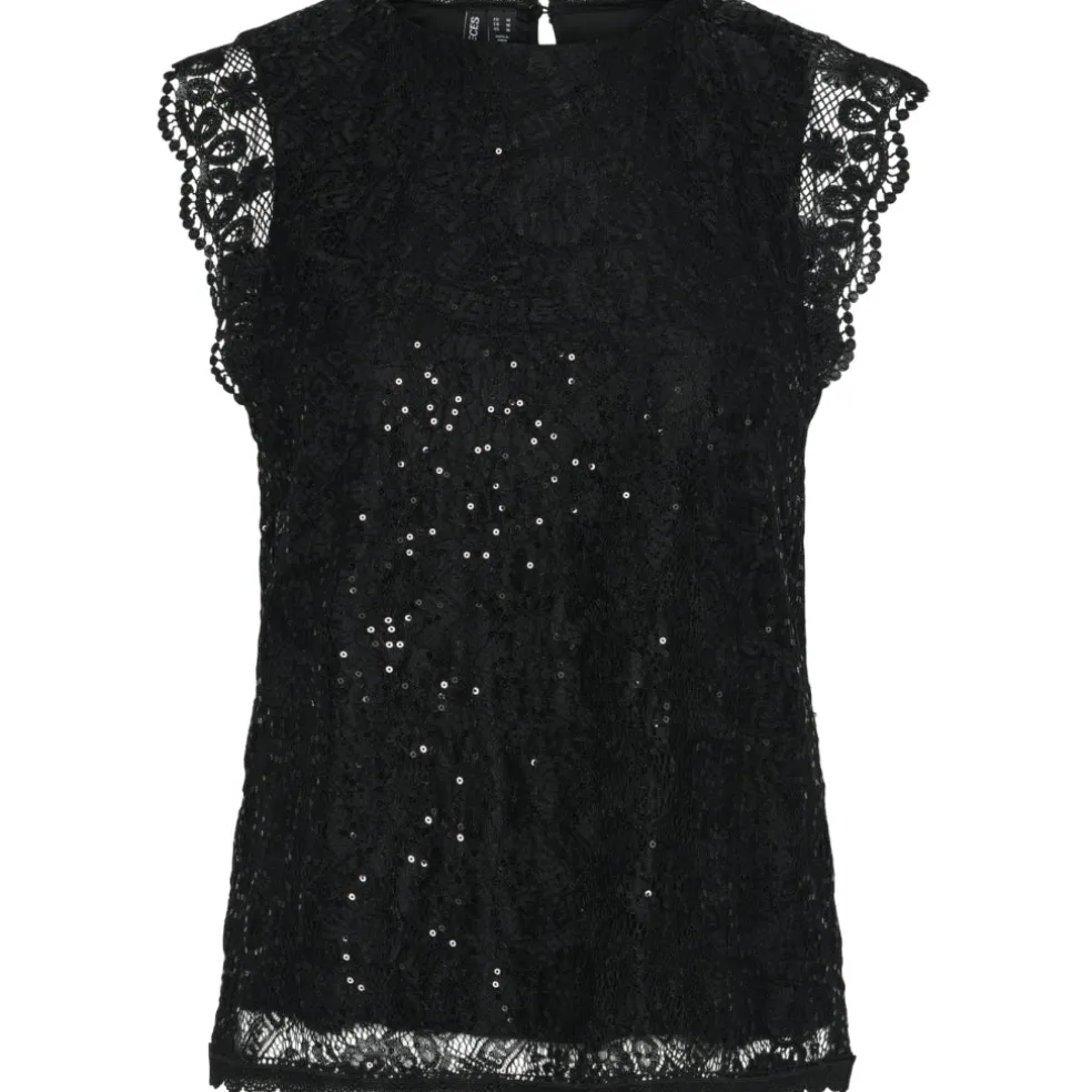 Fin top med blonder fra Pieces. Kan både styles for sig selv eller med en blazer over.
