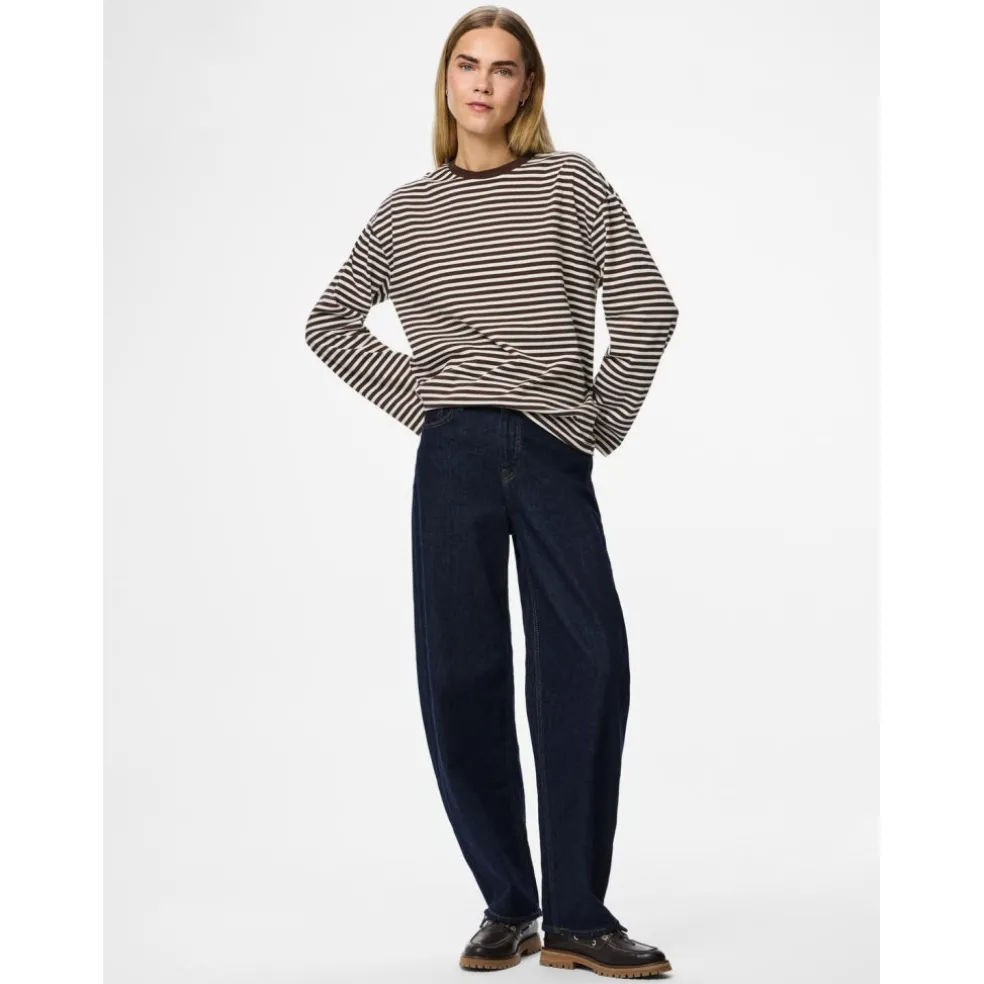 Den perfekte basis trøje til dit klædeskab med fine detaljer, som den hvide kant ved kraven. Rummelig i størrelsen, men size op for et mere oversized look.