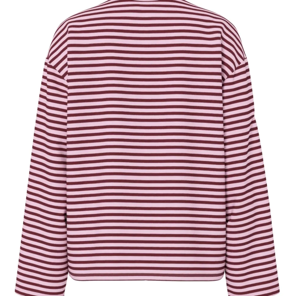 Den perfekte basis trøje til dit klædeskab med fine detaljer, som den hvide kant ved kraven. Rummelig i størrelsen, men size op for et mere oversized look.