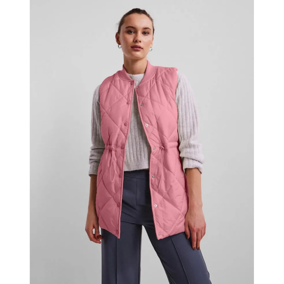 Quilted vest med knapper som lukning samt elastik i taljen der kan justeres.