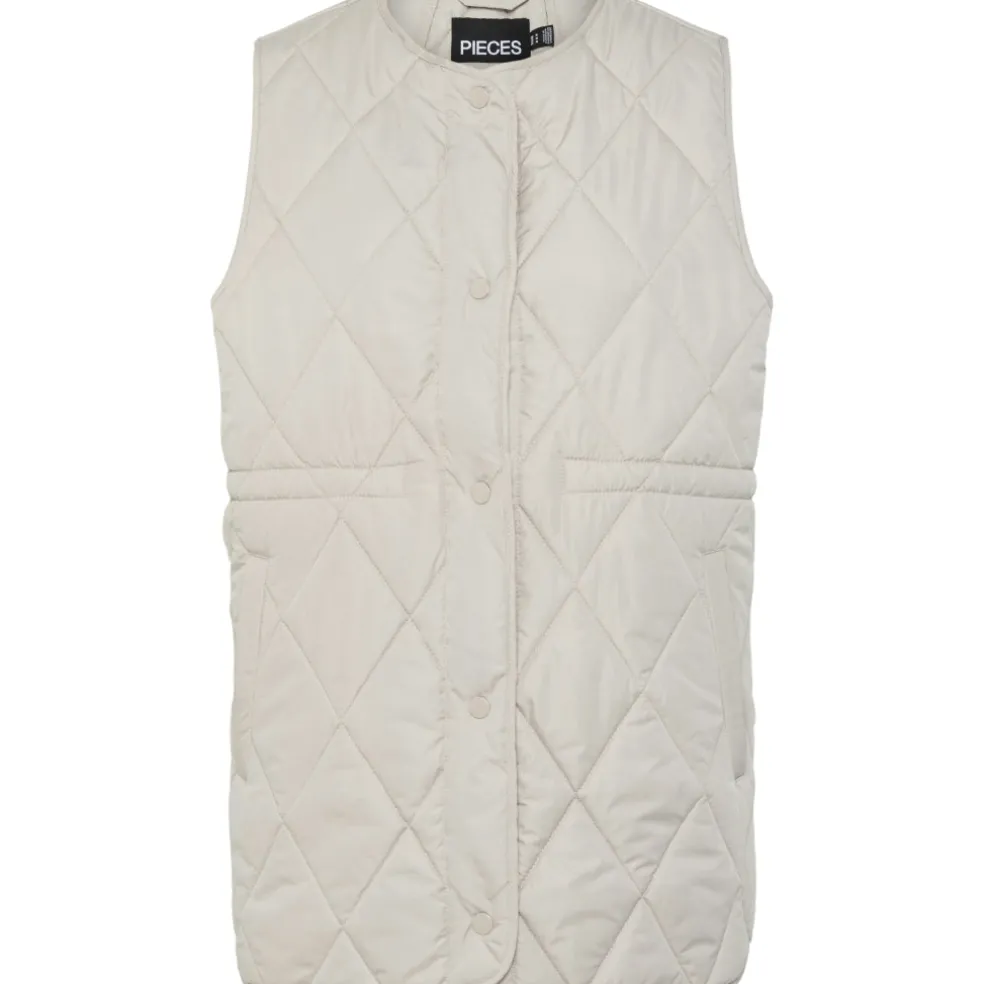 Smart quiltet vest fra Pieces. Vesten har knapper langs fronten og er ideel over en langærmet t-shirt. Tidløs og elegant.