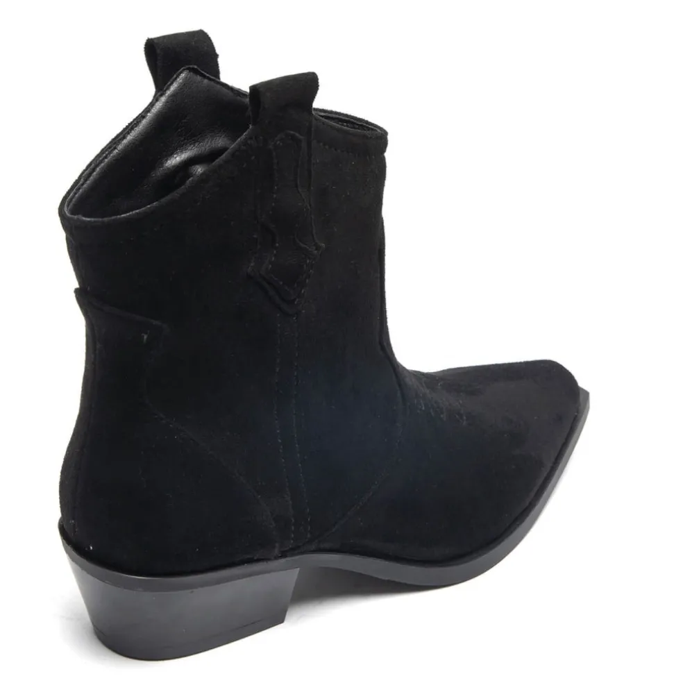 Virkelig smart kort cowboy støvle i ruskinds look. Perfekt til både bare ben, strømpebukser og jeans.