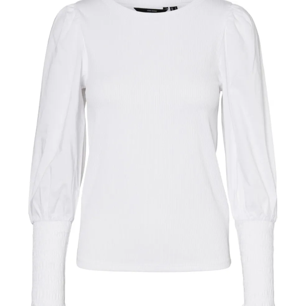 Super fin langærmet bluse fra Vero Moda med rund hals og pufærmer. Blusen kan styles til et par jeans og støvler.