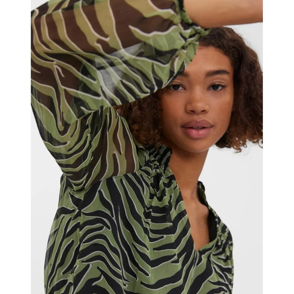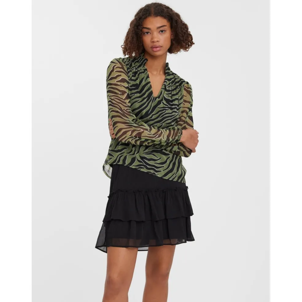 Lækker bluse fra Vero Moda med v-udskæring og flere fine detaljer. Blusen er perfekt til en fødselsdag eller andre arrangementer.