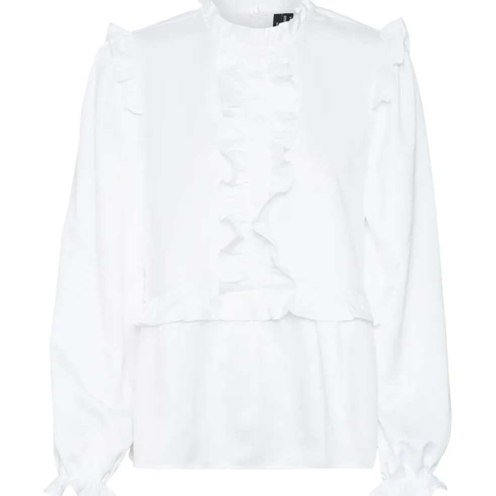 Smuk satinbluse fra Vero Moda med flæser.