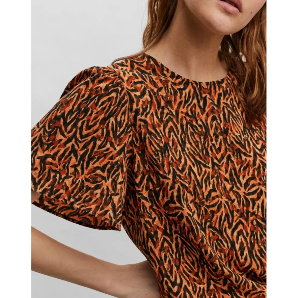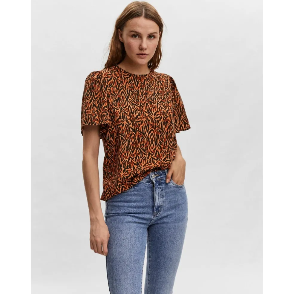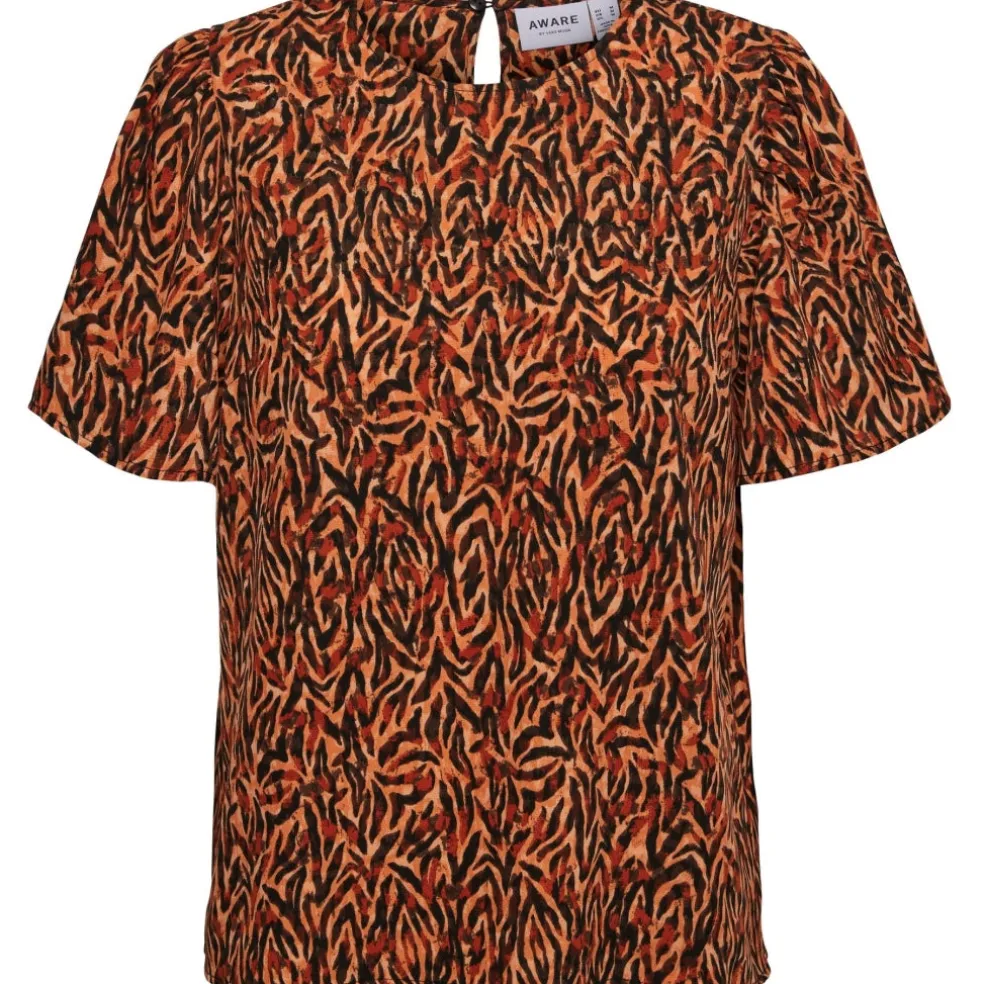 Flot printet bluse med korte ærmer. Kan styles til jeans.