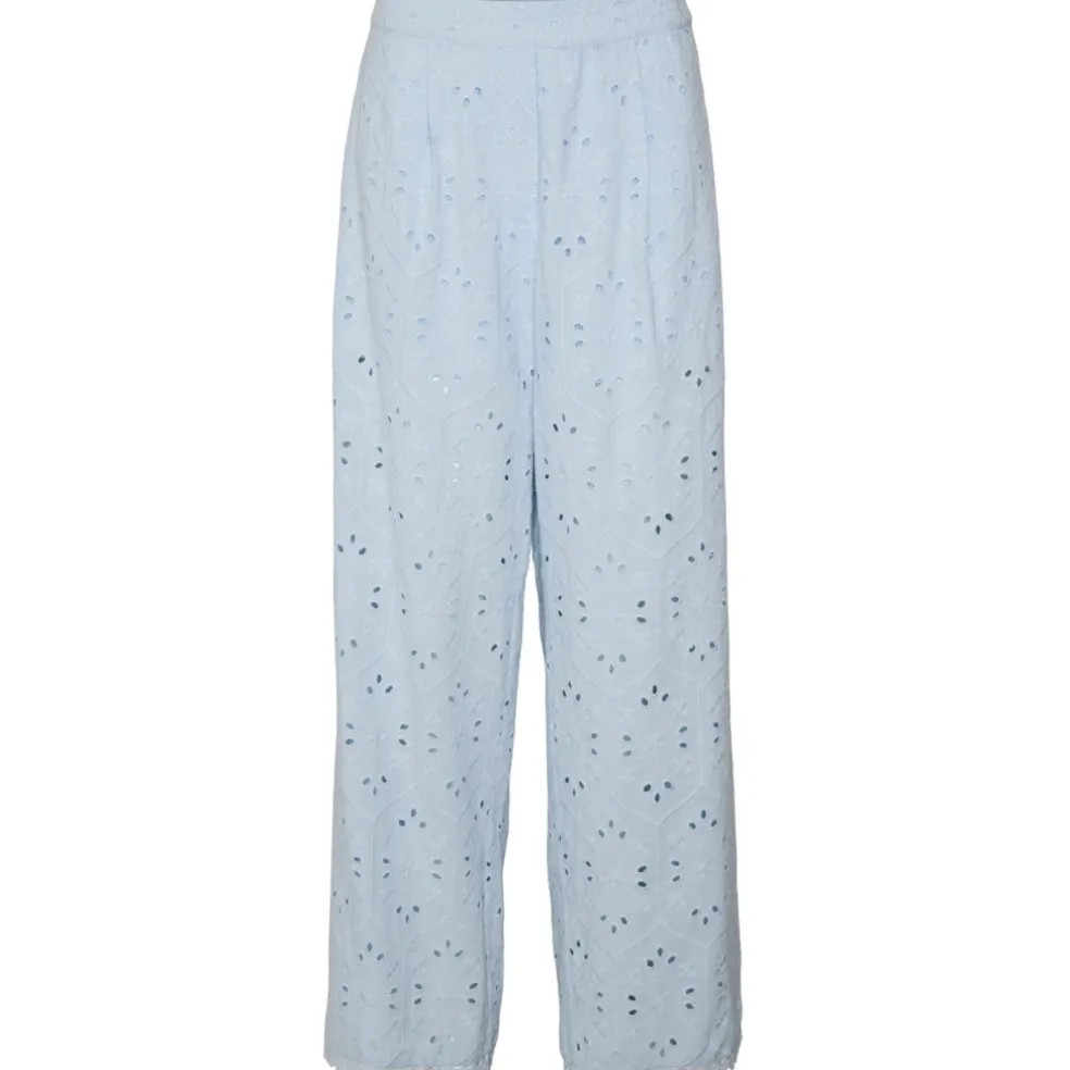De sødeste bukser med broderi anglaise fra Vero Moda. Kan sammensættes med matchende skjorte fra samme serie.