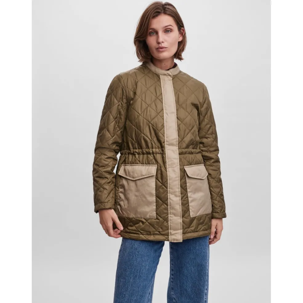 Cool kviltet jakke med kontrast detaljer fra Vero Moda. Jakken har lommer, og indvendig bindebånd, så man kan justere den til i taljen.
