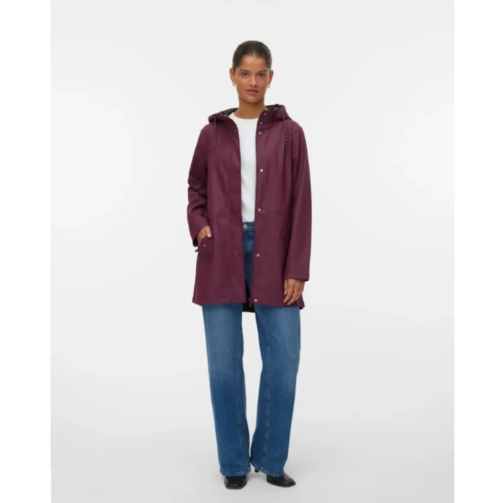 Smart regnjakke fra Vero Moda. Jakken har hætte, lommer i siderne og snørning i taljen. Den holder dig tør på regnfulde dage, og er perfekt til både hverdagsbrug og udendørsaktiviteter.