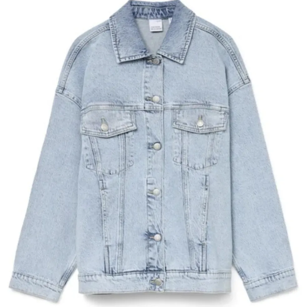 Cool denimjakke i den sejeste vask med krave, brystlommer og knapper langs fronten. Brug den som jakke her til foråret og sommeren, og tilføj jeans eller en nederdel.