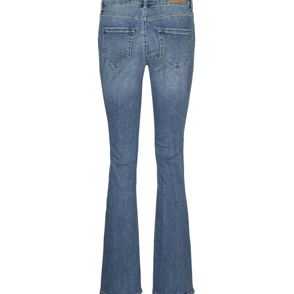 Flare jeans fra Vero Moda. Buksen sidder strammere ved hofte og lår, og bliver bredere fra knæet og ned. Et must-have til hverdagsgarderoben.