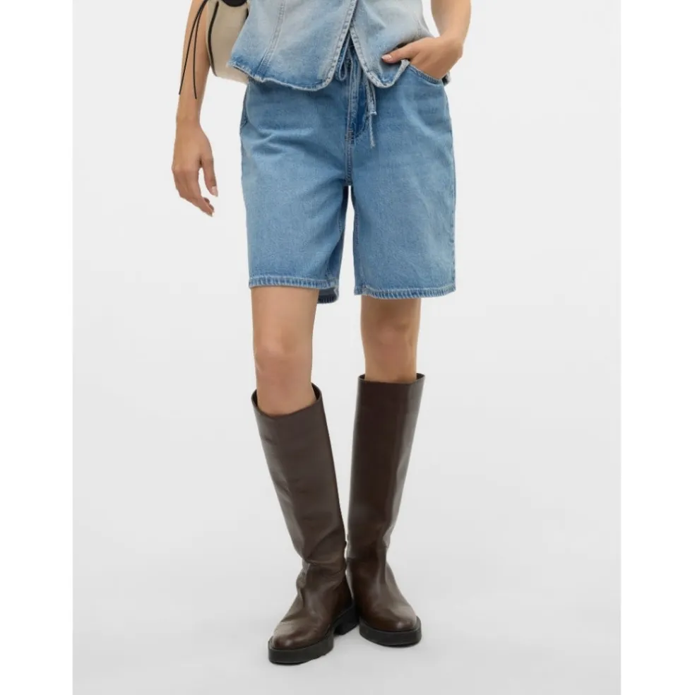 Fede denimshorts med bindebånd fra Vero Moda. Shortsene stopper lige over knæet og er super seje med et par høje støvler til. Brug dem evt. med en vest i samme vask for et komplet denim-on-denim look.