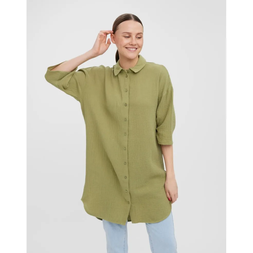 Skjorte med knapper og brede ærmer. Style denne fede skjorte med et par lange støvler og en cool taske for et smart sommer look.