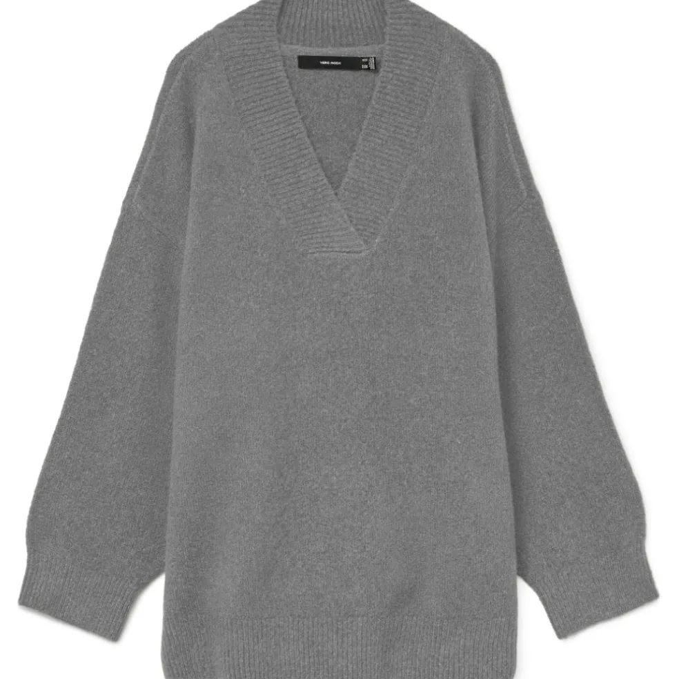 Lang oversize strik med v-hals. Perfekt til jeans eller med en nederdel under.