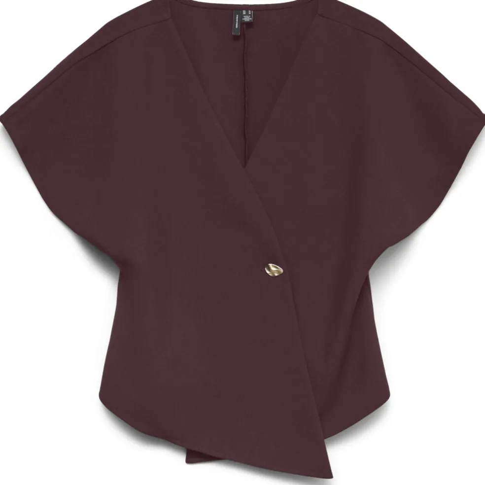 Top med V-hals og knaplukning, kortærmet med droppet skulder. Regular pasform. Kombiner med smykker eller en let jakke for et stilfuldt look.