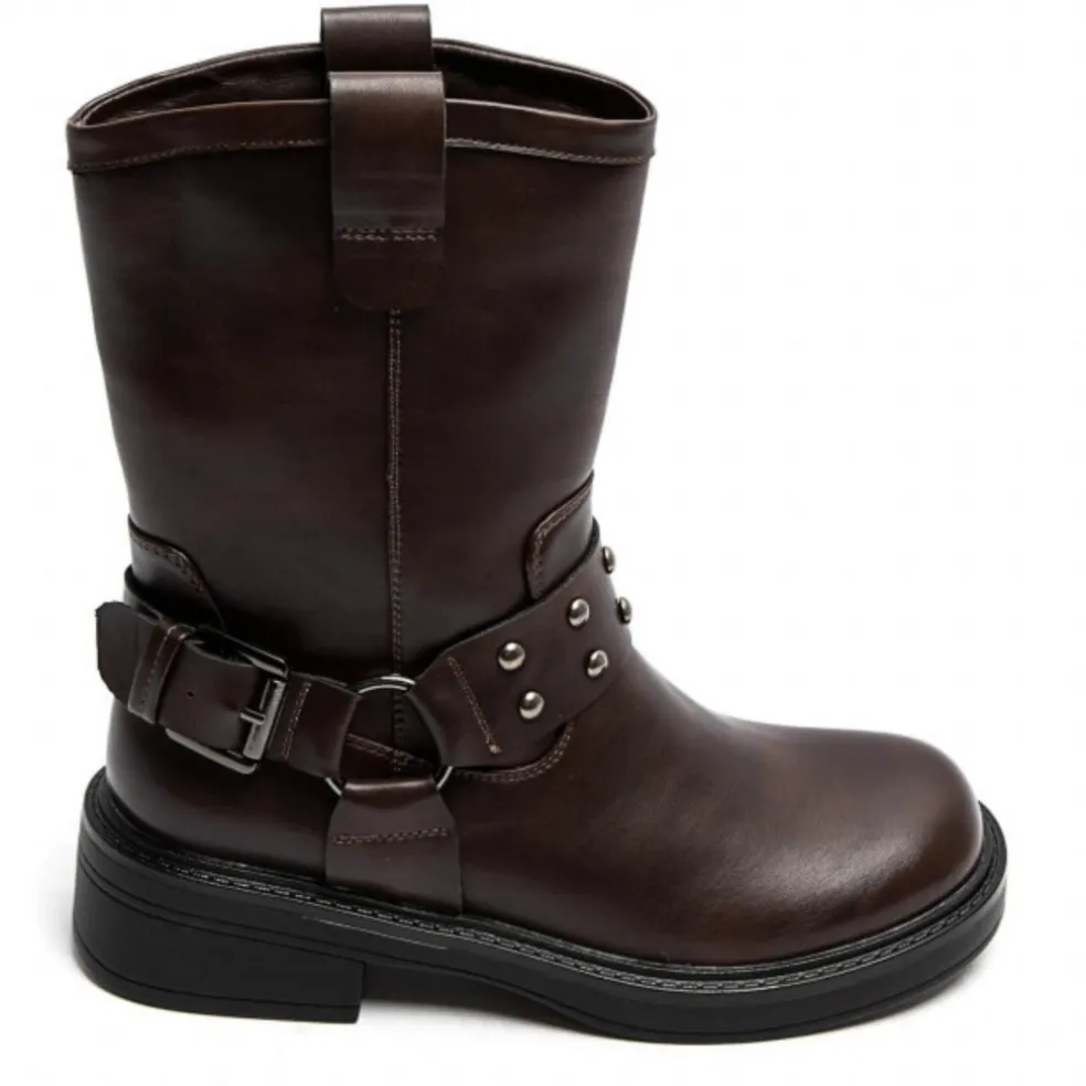 Sej chunky støvle med rå detaljer. Støvlerne har rem omkring anklen med nitter.