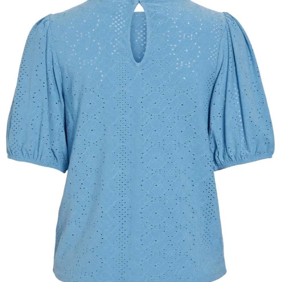 Feminin blondebluse fra Vila. Blusen har de smukkeste detaljer og er ideel både til hverdagsbrug og finere brug. Brug den både med jeans og nederdele alt efter anledningen.